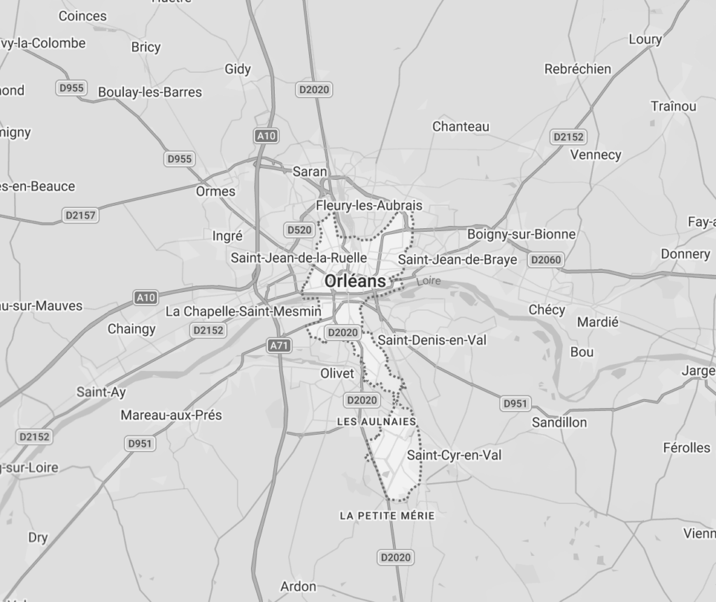 Orléans Sud : Saint-Denis-en-Val, Olivet, Saint-Jean-le-Blanc, Saint-Cyr-en-Val, Sandillon, Saint-Pryvé-Saint-Mesmin, Saint-Hilaire-Saint-Mesmin, Ardon, La Ferté-Saint-Aubin, Mareau-aux-Prés, Cléry-Saint-André, Marcilly-en-Villette, Jouy-le-Pothier …